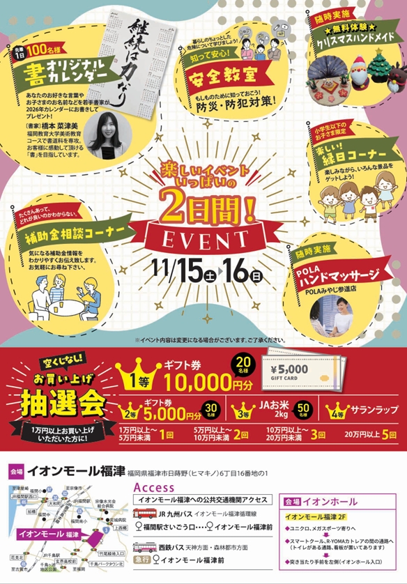 11月15日(土)、16日(日)の2日間、イオンモール福津2階のイオンホールで合同展示会を開催します!